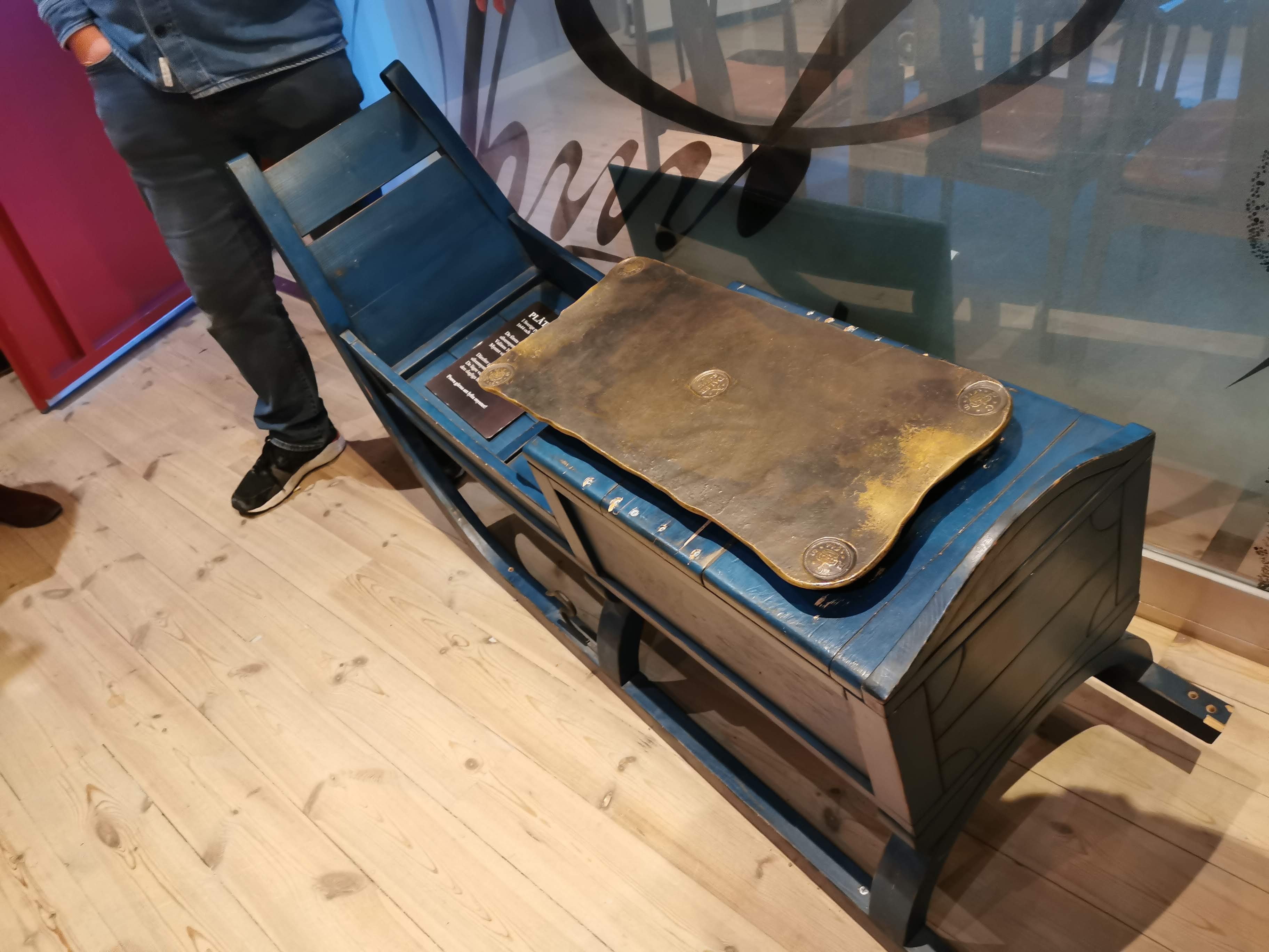 I september hade vi en intressant visning på Bruksmuséet i Tumba. Här har funnits ett pappersbruk sedan flera hundra år, där man specialiserat sig på att tillverka sedelpapper.Vi fick en informativ visning av muséet som handlar om pengarnas historia. Här syns ett jättelikt kopparmynt från 1700-talet.