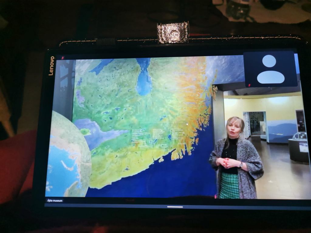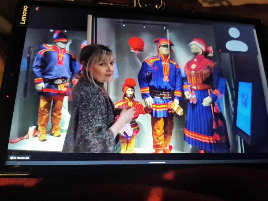 Först ut var en mycket intressant och inspirerande digital visning av Ajtte museum i Jokkmokk. Våra två guider berättade om Sàpmis tiotusenåriga historia. Tonvikten låg på konst, hantverk o dräkthistoria och vi fick lära oss om de stora skillnaderna mellan nord- och sydsamisk tradition.