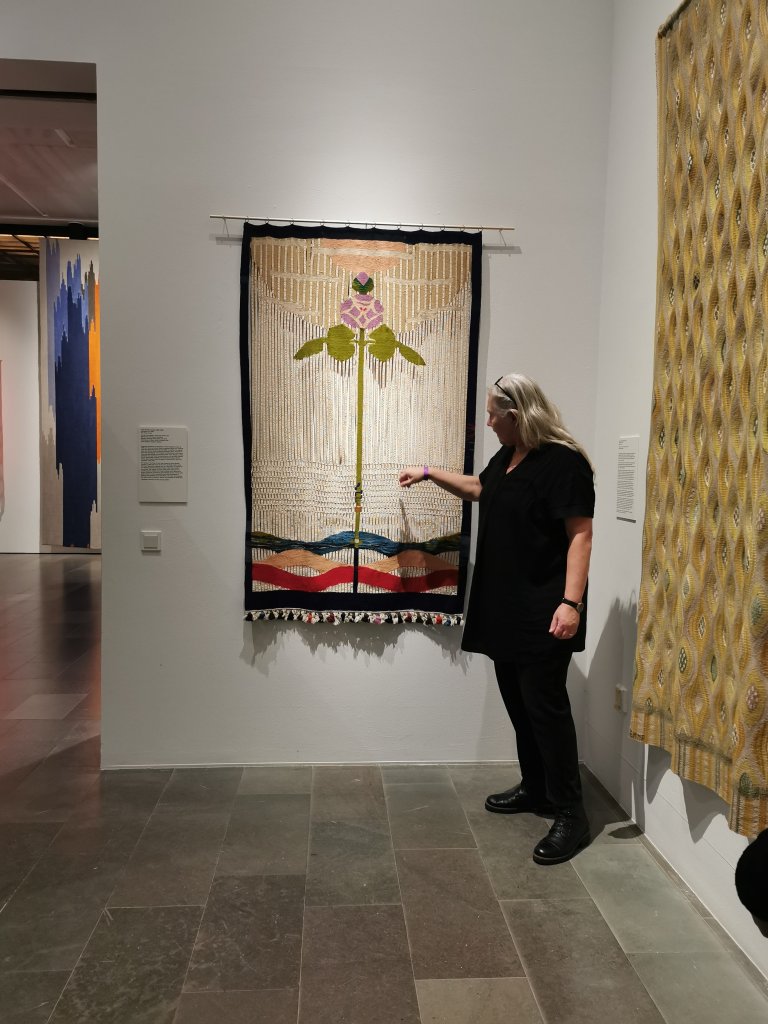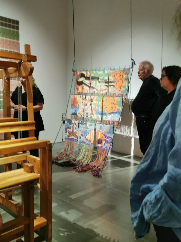 Årets sista visning blev ”Livets och trasornas väv” på Sven-Harrys konstmuseum. En fascinerande utställning med vävstolen i centrum och en rad textila verk från förr och nutid visades.