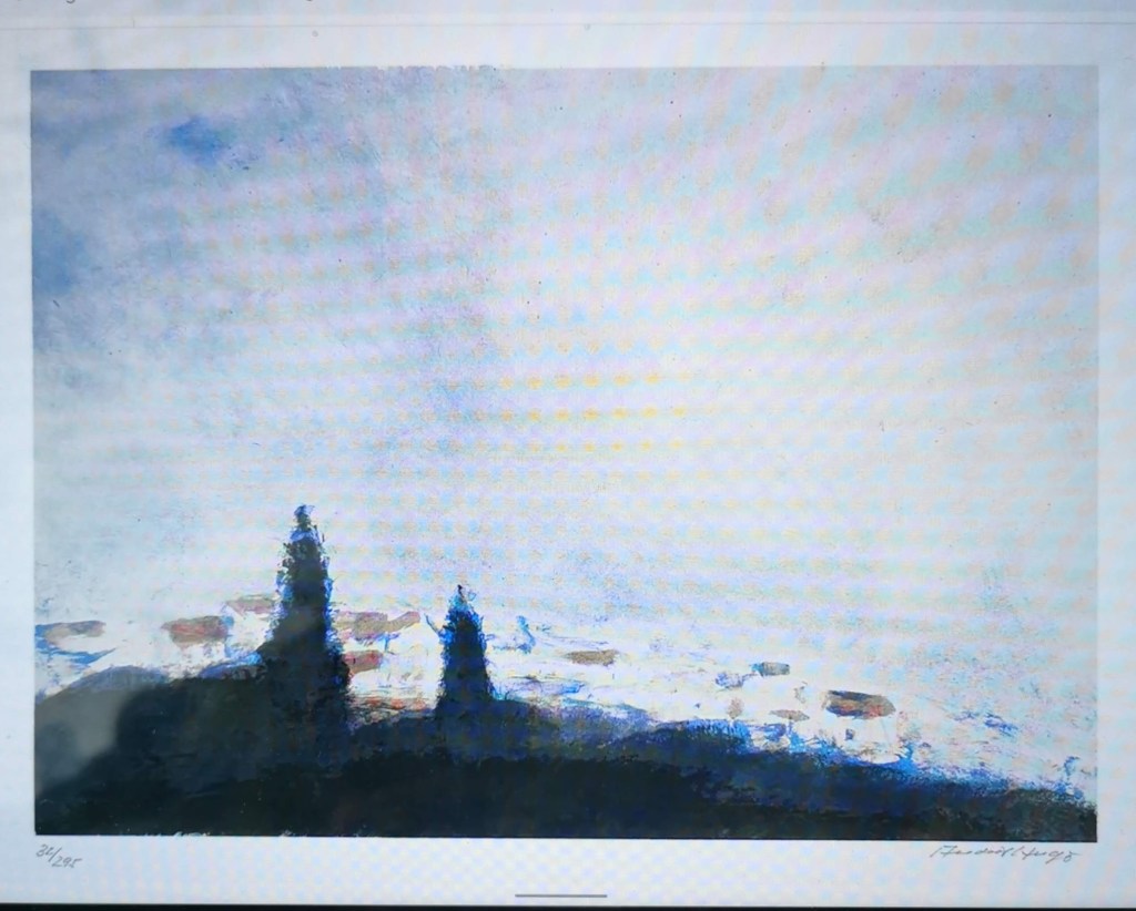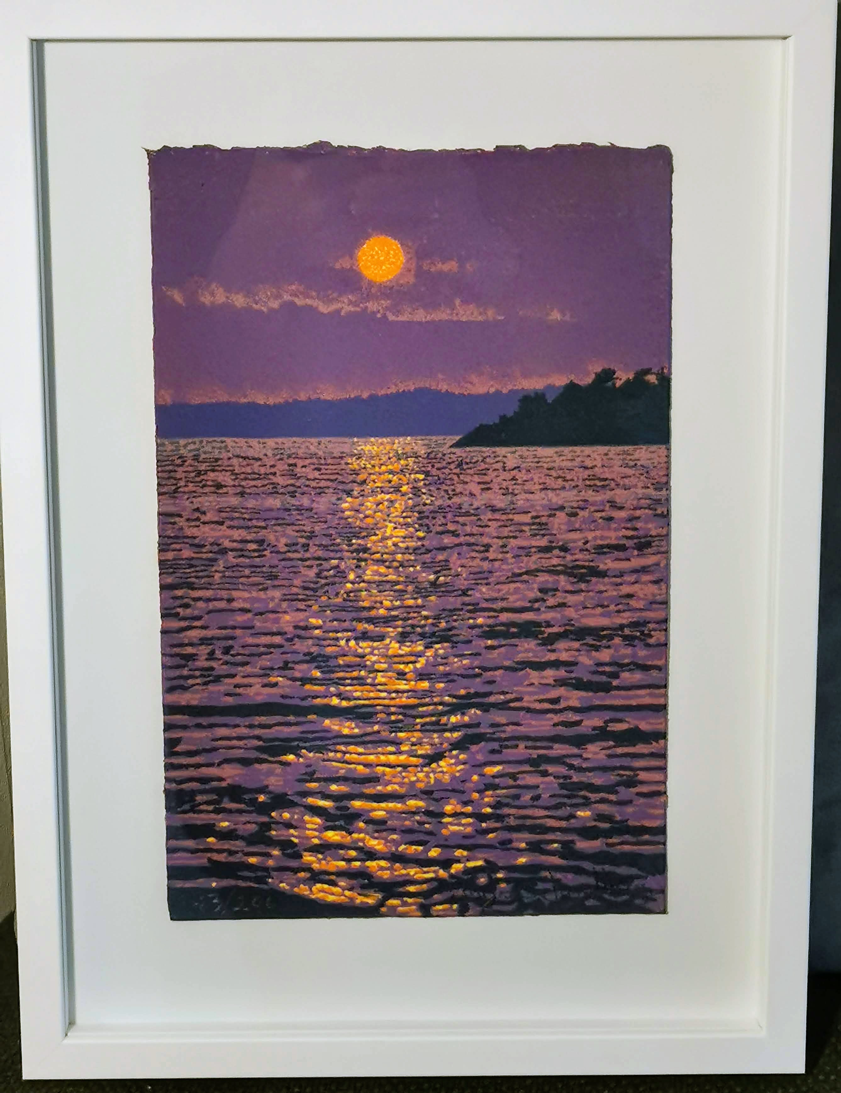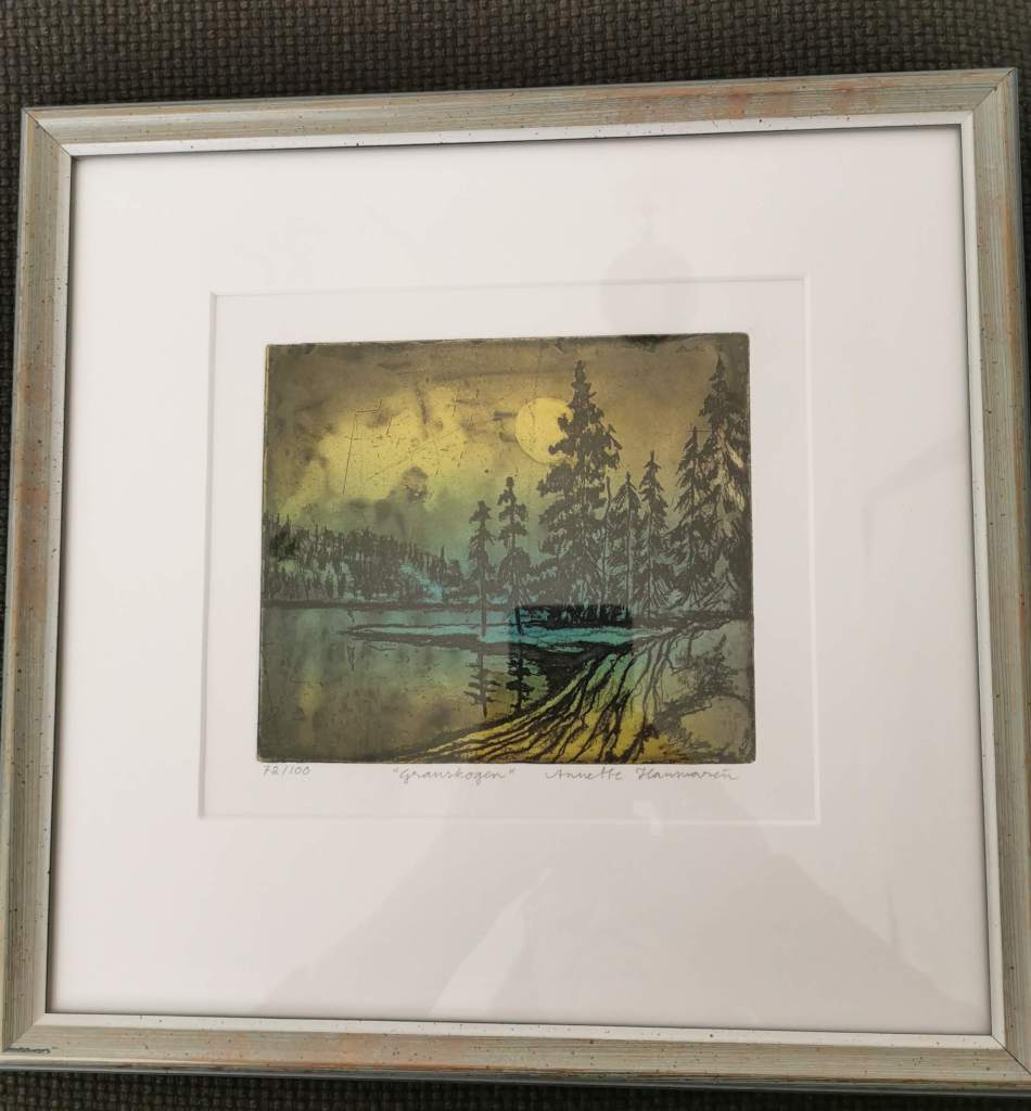 6. ”Nattljus, Björn Wessman, seriegrafi 32×30 cm. Målare och grafiker utbildad vid Kungliga Konsthögskolan, är en av våra mest kända samtida landskapsmålare.