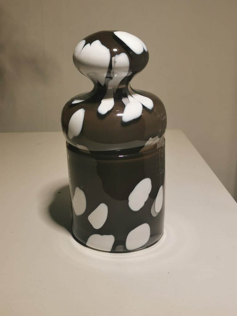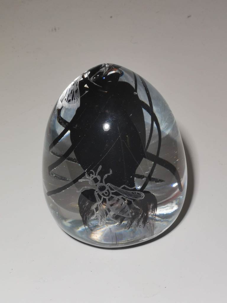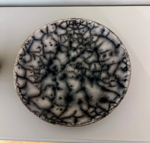 9. Stengodsfat i rakuteknik, 24 cm i diameter, höjd 4,4 cm. Maria Englund krukmakarmästare vid Gamla stadens Krukmakeri Eskilstuna.10. Vas i stengods höjd 12,5 cm diameter 11 cm. Maria Englund, Gamla stadens Krukmakeri Eskilstuna.11. Konstsmide höjd cirka 15 cm. Inge Danielsson utbildad vid Hellidens folkhögskola och Konstfack. ” Jag inspireras av det traditionella järnsmidet och själva hantverket. Med traditionell teknik och personlig formgivning vill jag skapa vackra ting.”12. Glasskulptur höjd cirka 12 cm. Anna-Lena Kauppi utbildad vid glasskolan i Orrefors, bl a representerad vid Nationalmuseum Stockholm 13. Burk i glas höjd cirka 16 cm. Ulla Gustafsson utbildad vid Kosta glasskolan, Nyckelviksskolan och Orrefors glasskola. Flerfaldigt prisbelönt och har haft många utställningar.14. Keramisk skulptur höjd cirka 10 cm. Sam Stigsson utbildad vid Konstfack och baserad i Stockholm och Skåne.”Man skulle kunna säga att man är en härmare. Jag gör något av material jag ofta hittar ute, gör om det till något som känns igen från mönster, fåglar eller annat jag sett.”